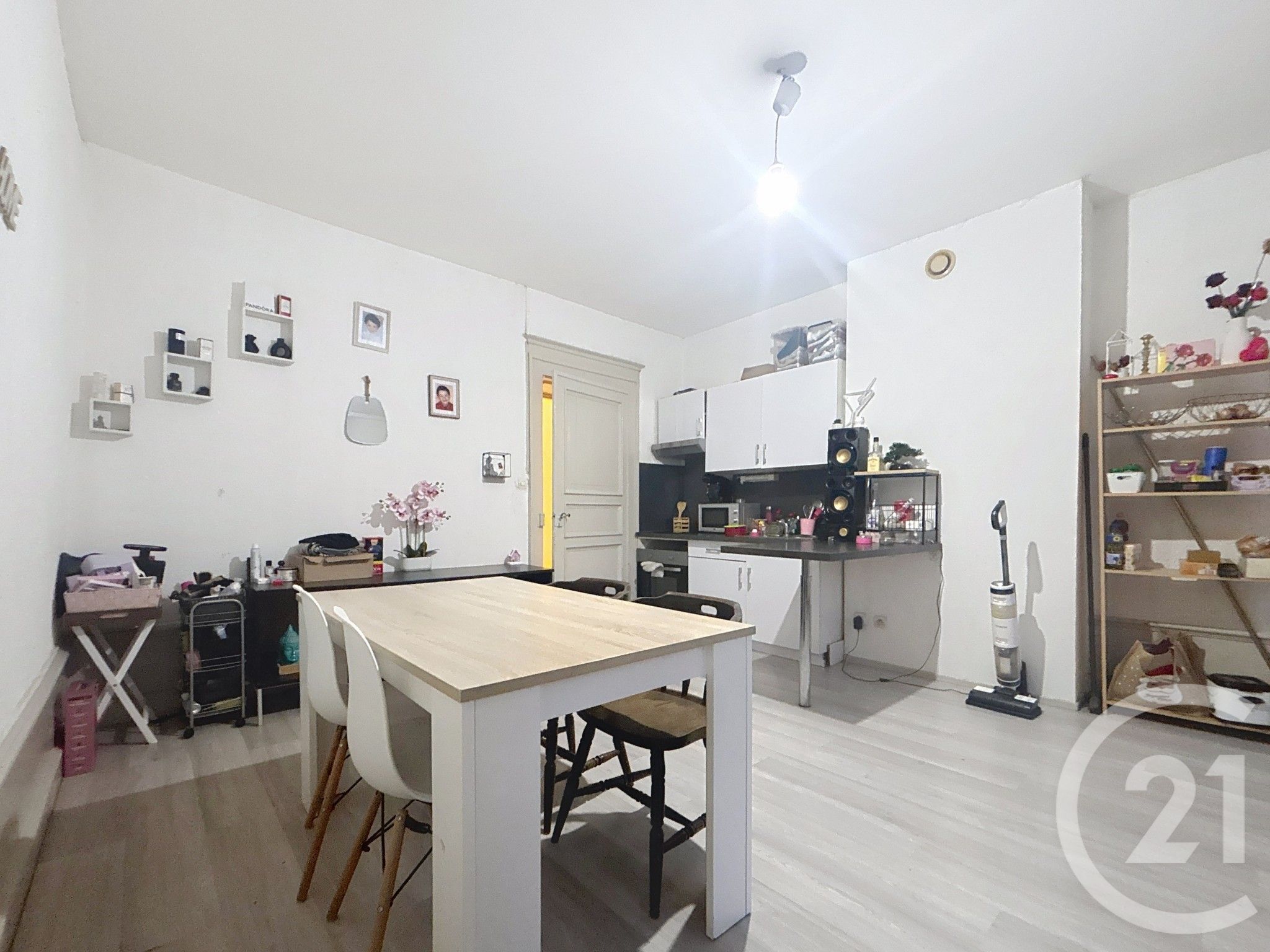 Le premier logement est un appartement T2 de 32 m², composé d'une cuisine ouverte sur le séjour, d'une salle d'eau et d'une chambre. Il est actuellement loué, assurant un revenu locatif immédiat.